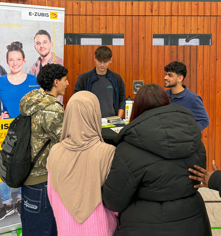 Vom Kundenkontakt auf der Baustelle bis zur Teamarbeit in der Werkstatt – die Auszubildenden der unterstützenden Innungsbetriebe erzählten aus ihrem Alltag, erklärten typische Aufgaben und beschrieben, was sie an ihrem Beruf besonders begeistert. Die Gespräche drehten sich dabei auch um handfeste Fragen: Wie läuft eine Bewerbung ab? Wie sehen die Chancen nach der Ausbildung aus? Und was verdient man nach der Ausbildung?